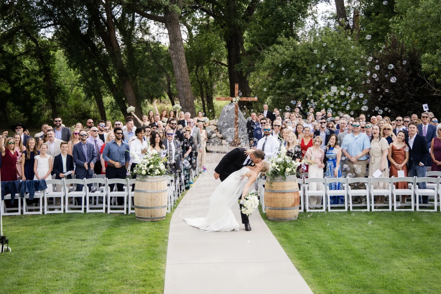 A luxury, riverfront winery wedding venue in Loveland, Colorado, Sweet Heart Winery offers one of the most romantic and unforgettable wedding experiences in the United States. Couples exchange vows along the banks of the Big Thompson River, surrounded by flowing water, towering trees, and mountain foothills that create a naturally breathtaking ceremony backdrop.